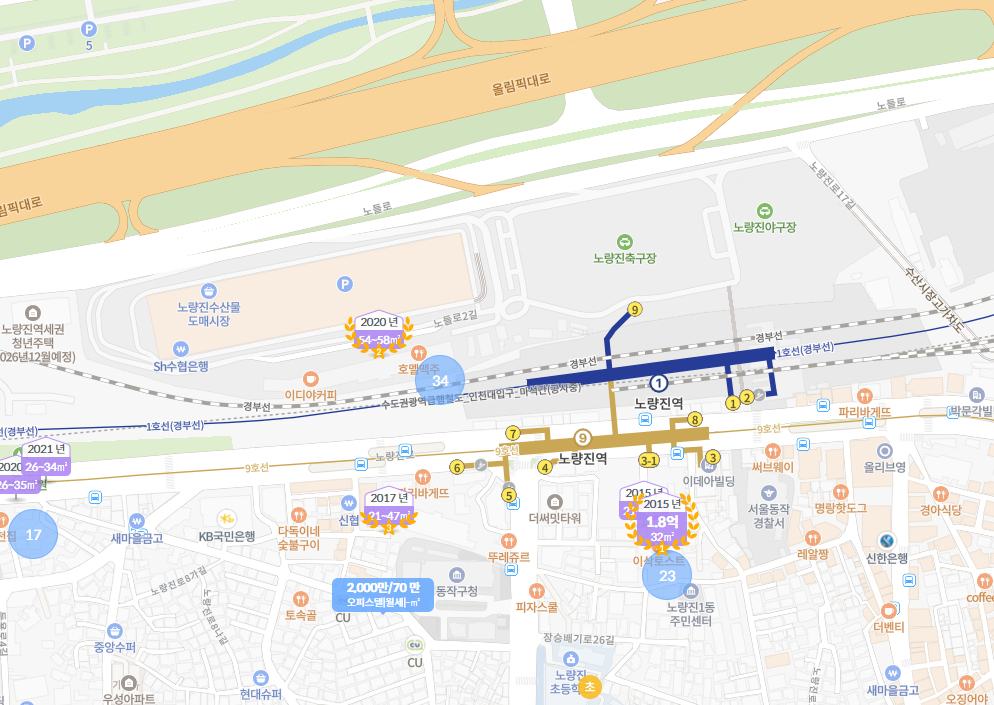 - 주변 환경 정보 학교, 병원, 대중교통 등 주변 인프라 정보를 함께 제공하여 부동산의 가치를 종합적으로 판단할 수 있도록 지원합니다.